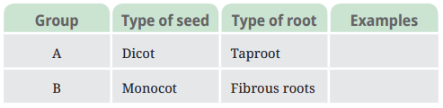 Based on the information in the table, find out examples of these plants for each group.